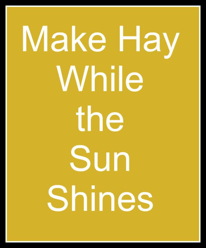The idiom, “Make hay while the sun shines” originated in an agricultural setting and originally it was in the form “when the sun shineth, make hay”.